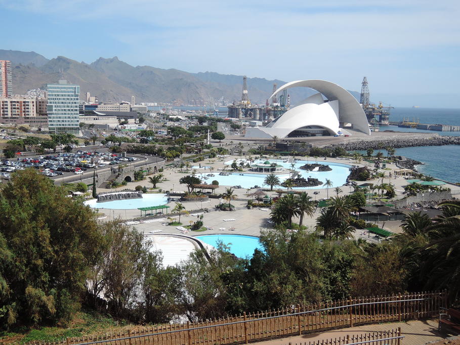 Santa Cruz de Tenerife, Blick vom Palmetum zum Auditorio