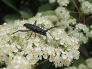 Bockkäfer auf Glanzmispelblüte